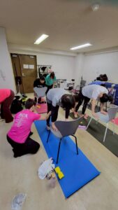 腰痛・膝編2クラスと首肩編のグループ体操と矯正をスタッフ7人で。おかげさまで満員御礼!!